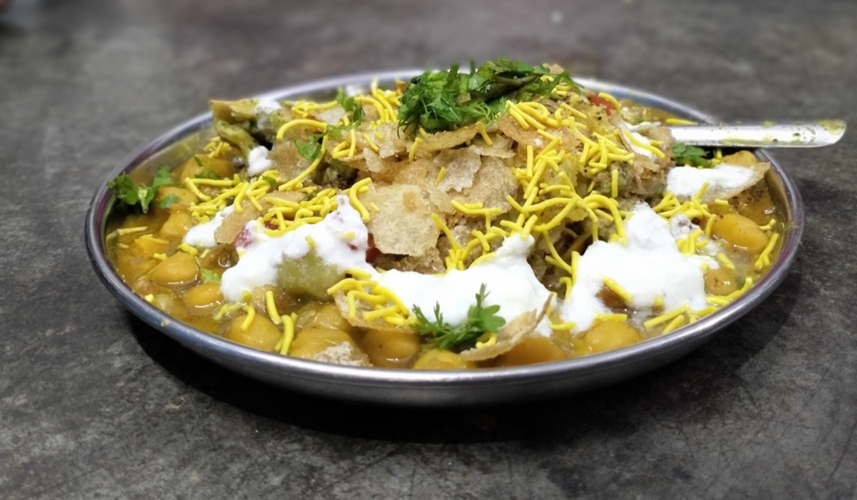 8 crispy puffed wafers with spicy mint water chutneys potatoes and chickpeas